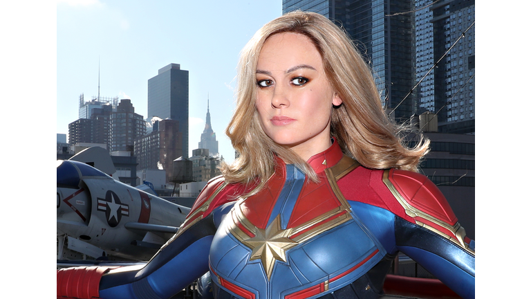 In New York City, the newly-launched Captain Marvel is on the legendary Intrepid Museum and Air Force in front of the skyline: